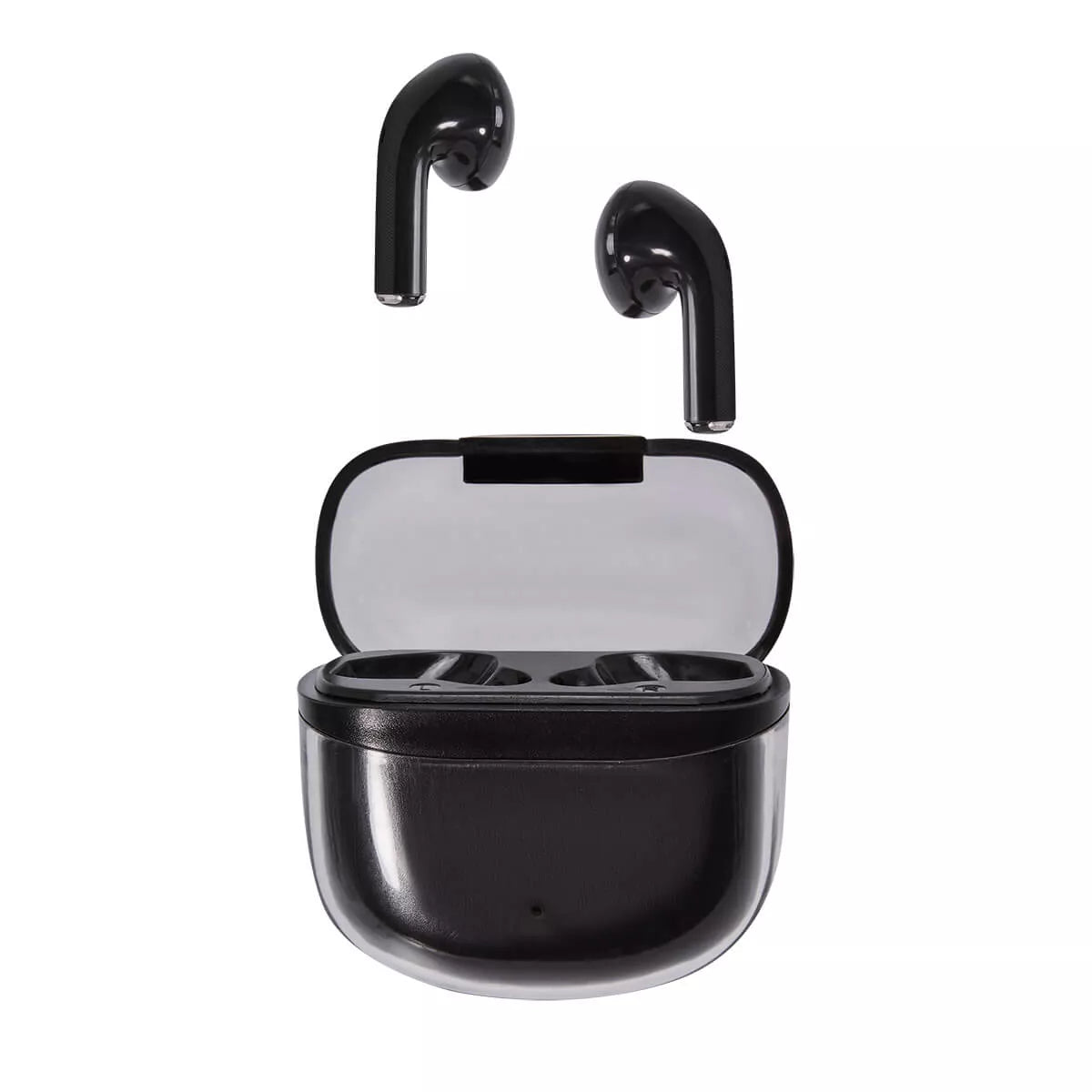 Descripción | Audifonos bluetooth con base recargable. Controles integrados touch para llamadas, volumen y reproduccion de audio. Reproduccion de musica 2 a 3 hrs aproximadamente. Rango de conexion de 10 metros. Incluye estuche de carga y cable cargador USB. |