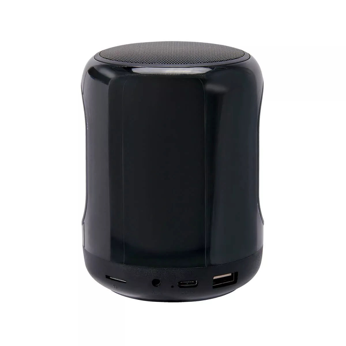 Descripción | Bocina bluetooth recargable con luz RGB ajustable a 10 efectos diferentes. Reproduccion de musica 4 hrs aproximadamente. Rango de conexion 10 metros. Cuenta con puerto para tarjeta TF, puerto USB, puerto auxiliar 3.5 mm y puerto tipo C. Radio FM. Incluye cable cargador USB. |