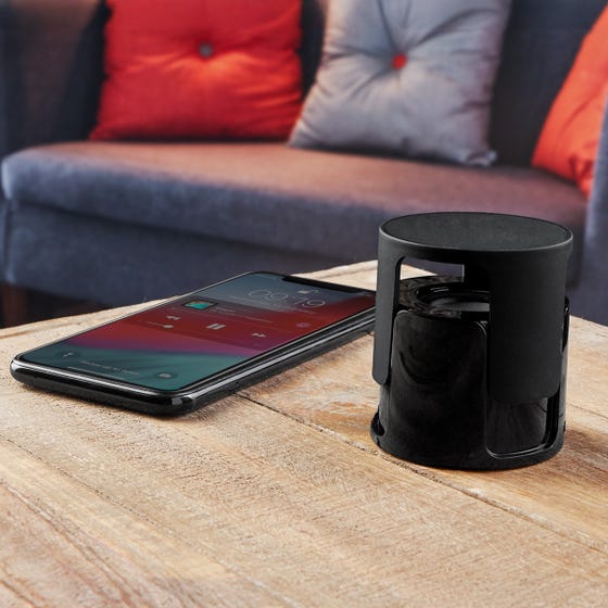 Bocina bluetooth con batería recargable. Controles integrados de volumen y reproducción de audio. Reproducción de música 3 hrs aproximadamente. Tiempo de carga de 2 hrs. Incluye cable cargador USB.