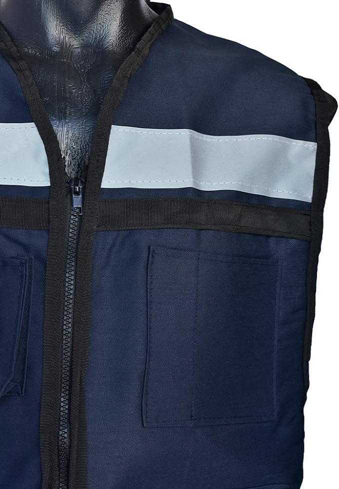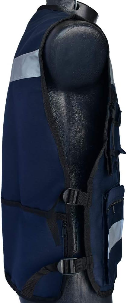 Con cierre al frente y costados abiertos para su ajuste a cualquier talla.
