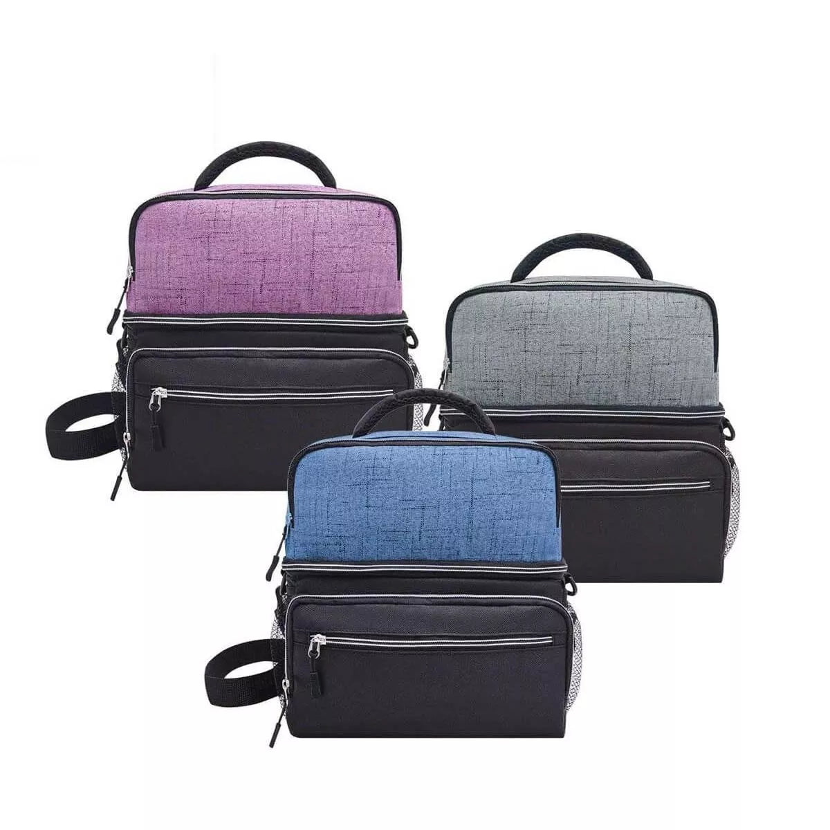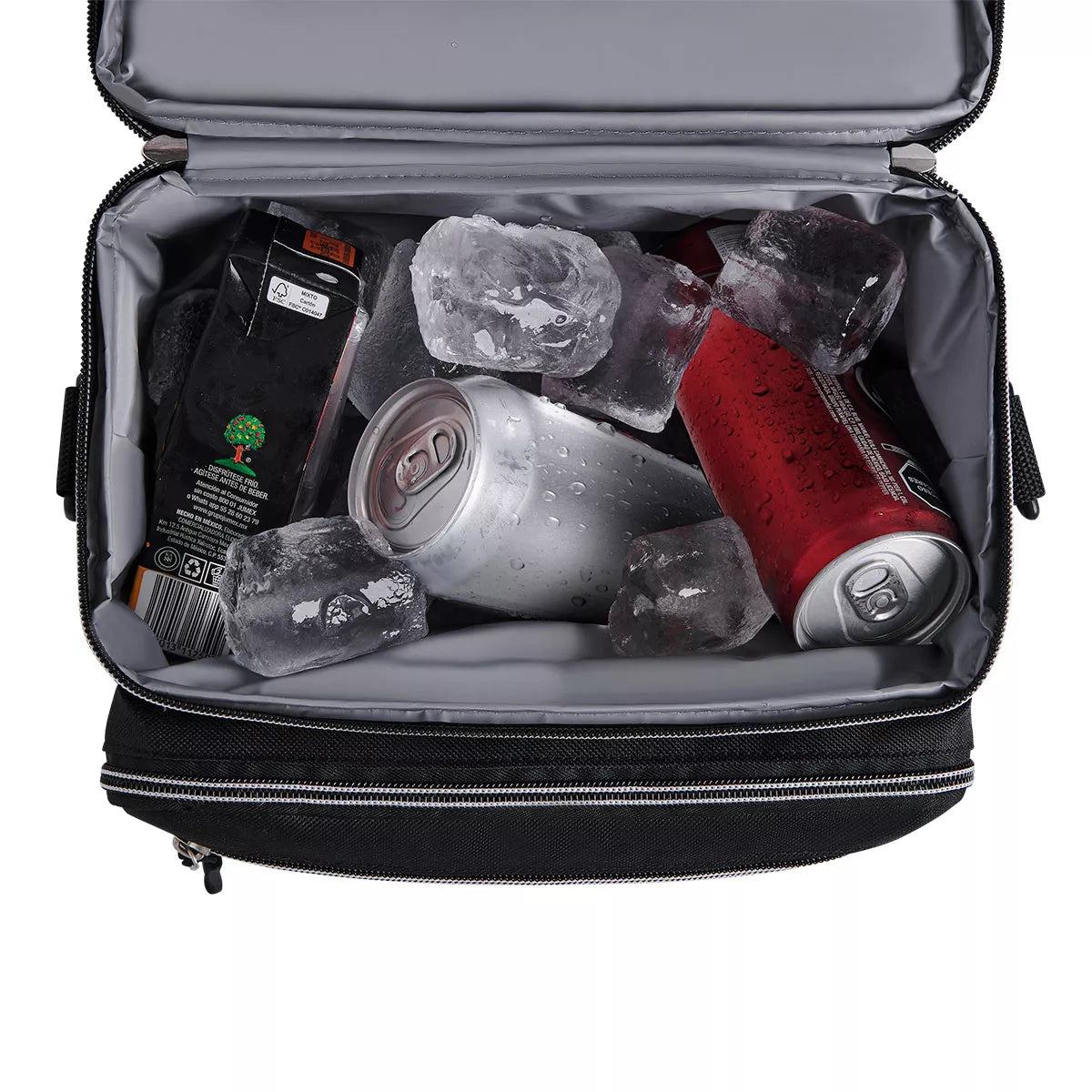 Descripción | Interior plastificado impermeable. Bolsa principal con cierre, 2 bolsillos frontales con cierre, bolsa frontal superior con cierre, 2 bolsas laterales de red. Incluye correa ajustable. Capacidad de 12 latas. |