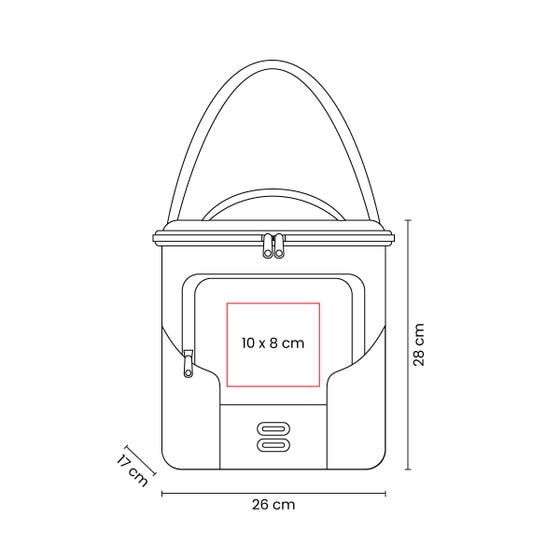 Hielera con interior plastificado impermeable. Bolsa principal y bolsa frontal con cierre. Al frente cuenta con 2 figuras reflejantes. Llévala a todas partes con su asa de transporte superior y correa ajustable para hombro. Su diseño y tamaño es muy cómodo para almacenar tus alimentos y bebidas. Capacidad para 12 latas.