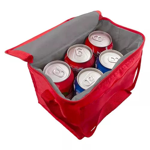 Descripción | Interior plastificado impermeable. Bolsa principal con cierre y bolsa frontal. Incluye correa. Capacidad para 6 latas. |