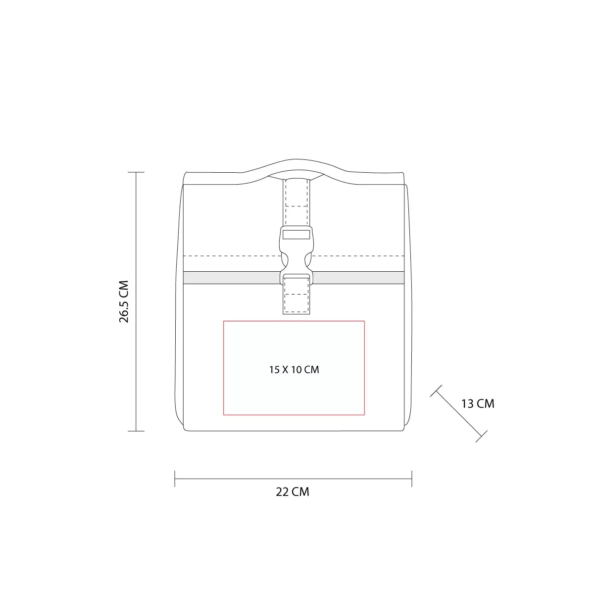 Descripción | Interior metalizado. Bolsa principal con broche, solapa enrollable, asa superior. Capacidad para 6 latas. |