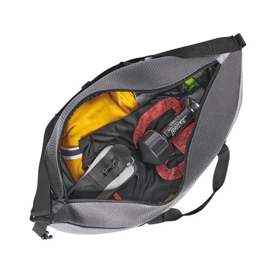 Compartimento principal y bolsillo frontal con cierre. Incluye broches laterales para ajustar el tamaño y correa para hombro ajustable.