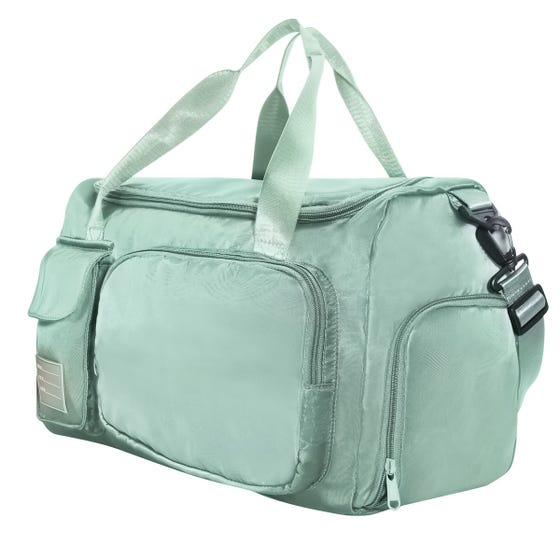 Maleta deportiva con bolsa principal con cierre y bolsa interna resistente al agua. Incluye compartimento lateral con cierre para guardar su calzado. Bolsa con cierre al frente, bolsillo con cerrado de velcro e identificador de silicón para su fácil localización. Para mayor comodidad cuenta con 2 asas de transporte superior, correa ajustable y removible para hombro y aditamento especial trasero para colocar en trolley.