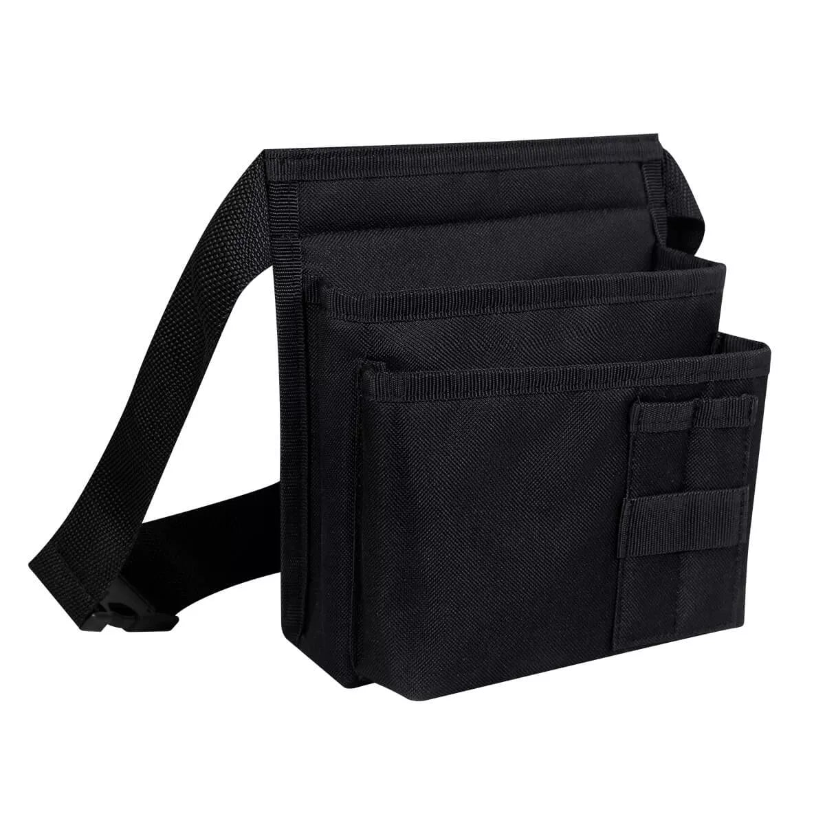 Bolsa para herramientas con cinturon ajustable y broche de plastico. incluye dos amplios compartimentos para colocar y tener acceso rapido a llaves, cintas, pinzas etc… en la parte frontal se agregan dos compartimentos para destornilladores y 1 cinta porta martillo.