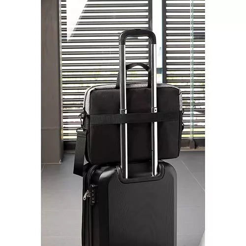 Bolsa principal y frontal con cierre. espacio para laptop de 15". incluye correa ajustable y desmontable, aditamento especial trasero para colocar en trolley y asas de agarre superior.