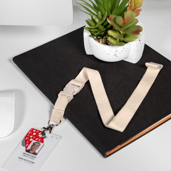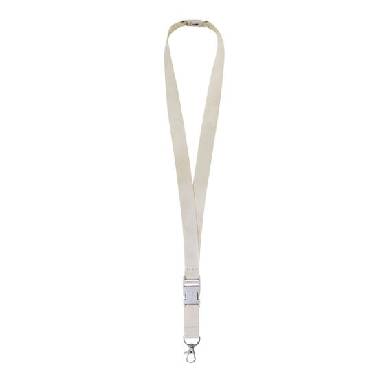 Fabricado con materiales eco amigables. Incluye broche de seguridad, clip desmontable y gancho metálico con giro de 360°.