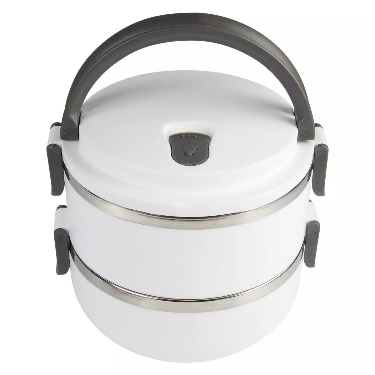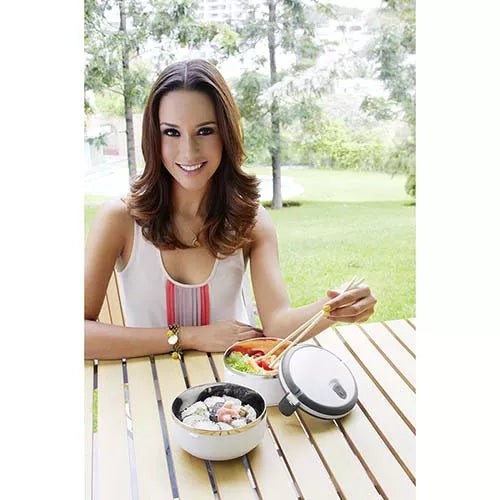 Descripción | Incluye dos recipientes para alimentos. Compartimiento superior para liquidos e inferior para solidos. Con agarradera doble, valvula de silicon y broches sujetadores. |