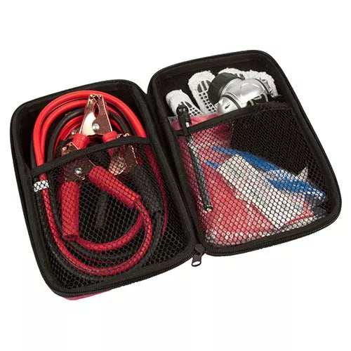 Descripción | Contiene cables pasa corriente (100 amp), medidor de presion de aire (50 psi), guantes, impermeable, vendas adheribles para proteger heridas, pinza, estuche y lampara para cabeza con 7 LEDS, utiliza 3 baterias AAA (no incluidas). |