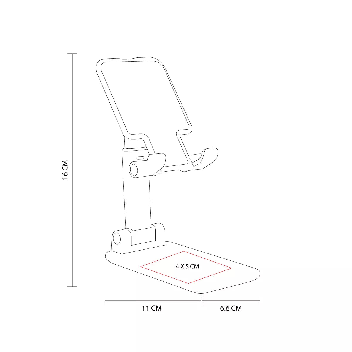 Descripción | Soporte plegable. Soporte y base con material antiderrapante. Altura e inclinacion ajustable. Desplegable a una altura maxima de 16 cm. |
